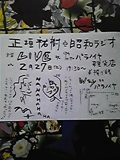 先日行われたパラノイヤ雑貨店でのLiveへお集まりの皆様、店長、企画の結城氏、共演者の昭和ラジオ、ありがとうございました。
